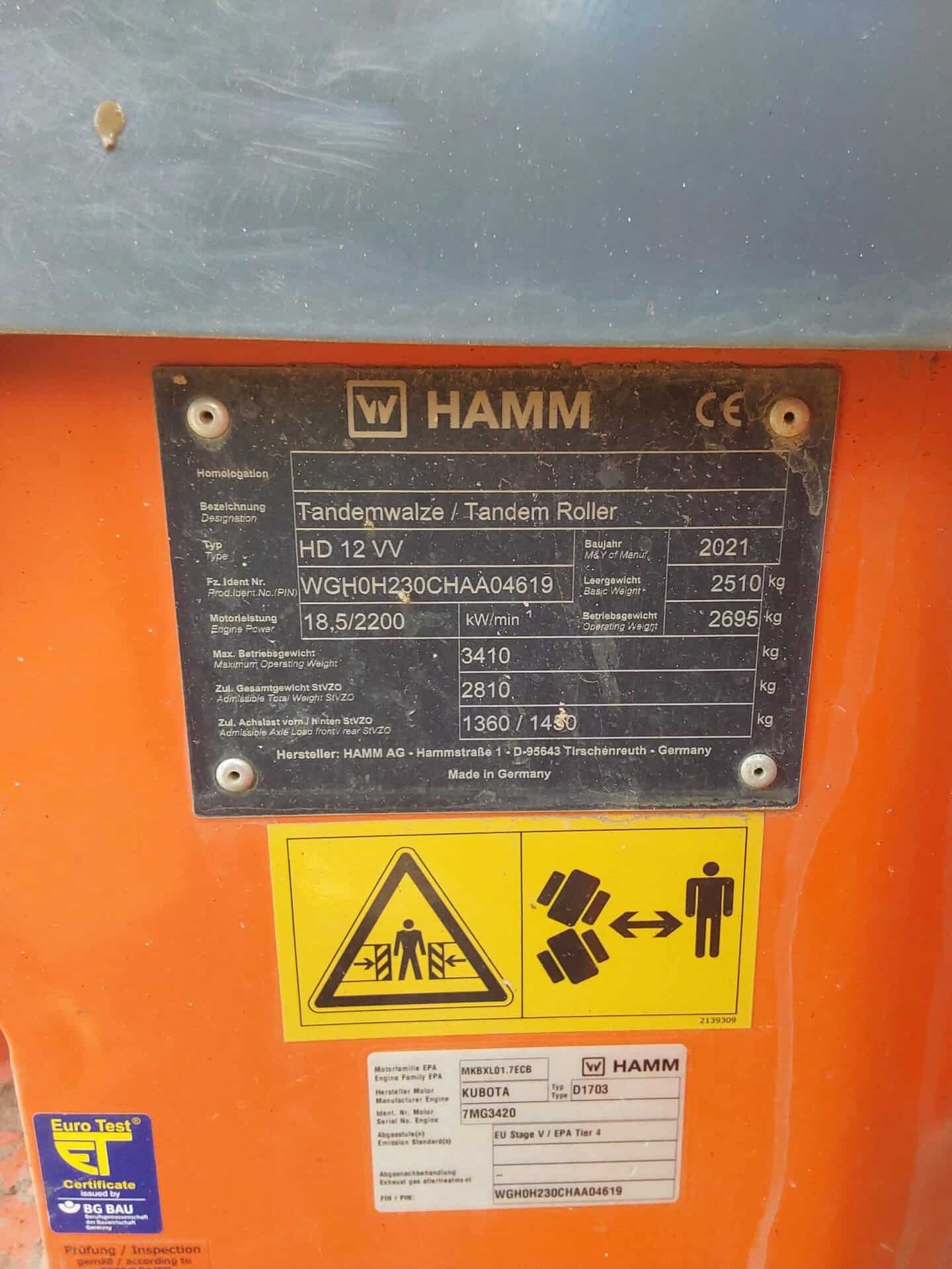 Hamm HD12 twin drum vibrating roller, 2021